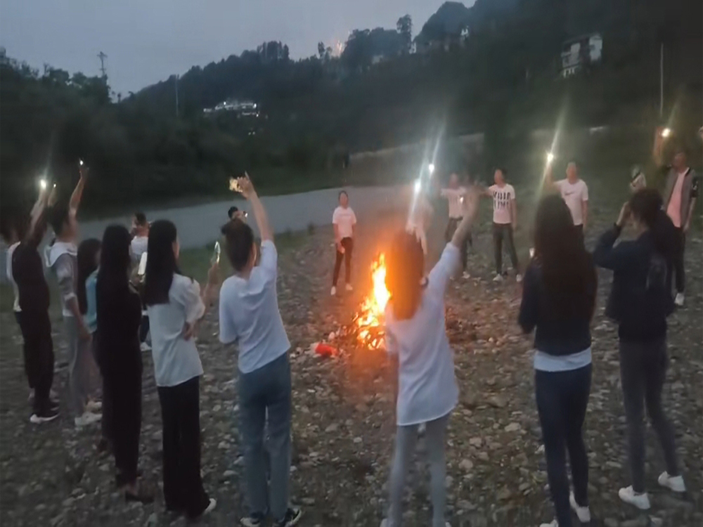 随着时间的流逝,今天的团建活动也接近了尾声,晚餐过后我们大家开始了篝火晚会,放着音乐大家手拉着手,一起载歌载舞,一起欢声笑语;在这一阵阵的欢笑声中结束了今天的团建活动。