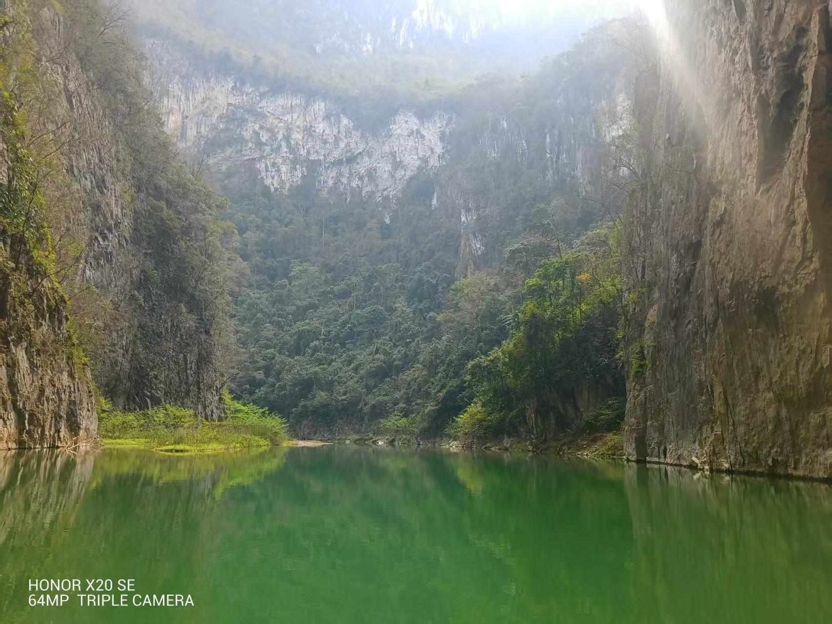 湖面泛起层层绿波,好似一块翠绿的翡翠,山林之间层峦叠翠,仿佛诉说着它的神秘